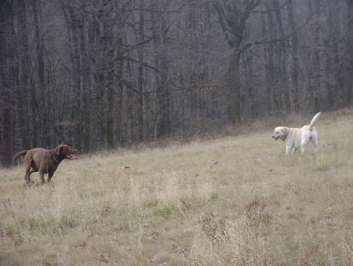 Netrvalo to moc dlouho od Března co jsem se rozhodla,že skusím opět nakrýt Muffin. I když se nám to nepovedlo jenou, věřila jsem, že to můžeme skusit po druhé. Dlouho jsem přemýšlela nad krycím psem. Nejdříve jsme měli vybraného žlutého labradora, jenže ten prošel operaci a tak by nebylo možné aby nakryl Muffin. Po té jsem náhodou narazila na hnědého labradora který bydlí ve vedlejší vesnici od nás... zjistila jsem si na ně kontakt a jela jsem se na druhý den podívat. Moc se mi líbil, ale Muffin ho jěšě k sobě nepustila ze začátku po něm štěkala, a tak jsme se domluvili, že přijdeme v útery. Jelikož Muffin i Wili byli prvňáčci v tom to, a ani jeden jěště nikdy nekryl, mysleli jsme, že to oba nezvládnou od útery se postupně začala nabízet Wilimu a tak to bylo lepší,ale furt jim to nešlo. Ve čtvrtek jsem jela do Charvat za černým psem, se kterým jsem byla domluvená dříve s Badym. Bady byl skušenější než Wili o dost,ale jak se ukázalo Muffin byla zamilovaná a Badyho si k sobě nepřipustila. Tudiž jsem si to chtěla ujistit a jěště ten den jsem zajela za Wilim, no a samozdřejmě jěště něž jsme dorazili k ním Muffin už vrtěla ocáskem. A jak jsme je vypustili tak se mu hned na stavila, v ten okamžik jsem věděla že s Badym to nemá smysl, když si vybrala tak si vybrala a stím už jsem nic nemohla dělat, a tak jsem napsala páničce od Badyho, že nepřijedeme, že je na to pozdě a že by se nenechala. A tak jsem skoušeli každý den jsem za nimi přijela a o každý den to bylo něco lepší. Konečně v sobotu se jim to podařilo. Wili byl statečný a přišel na to, po chvilce byli spolu svázání a vše bylo brzo u konce. Oba pak odpočivali a my jsme jeli domu.